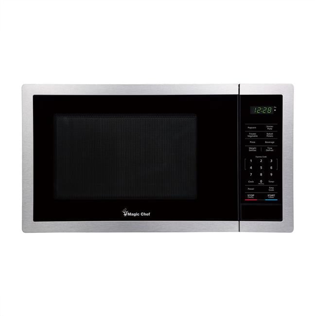 The Silver 0.9 Cu. Ft. Countertop Microwave is designed to perform all your heating and cooking needs in 1 compact piece of equipment that will fit into any kitchen, dorm room, or office environment. This device has 11 power levels to accommodate different heating needs. The digital display is easy to read and the handy kitchen timer is a must-have for any cook in the kitchen. It features user-friendly controls, including express-cook buttons and auto defrost options for weight and time. There are 6 auto cook menus for commonly microwaved items and include popcorn, dinner plate, pizza, baked potato, beverage, and frozen vegetables. This microwave is also designed to have an "add 30 seconds" button. As a safety measure, it has a child safety lock to avoid unintended use of the microwave.
