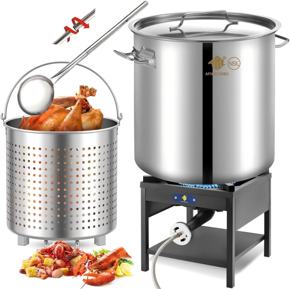 100QT Stainless Steel Seafood Boiling Kit with 48" Large Spoon, 200,000BTU Propane Burner for Outdoors Cooking, Large Stock pot w/Basket for Shrimp, Lobster, Crab Crawfish, Turkey Deep Fryer