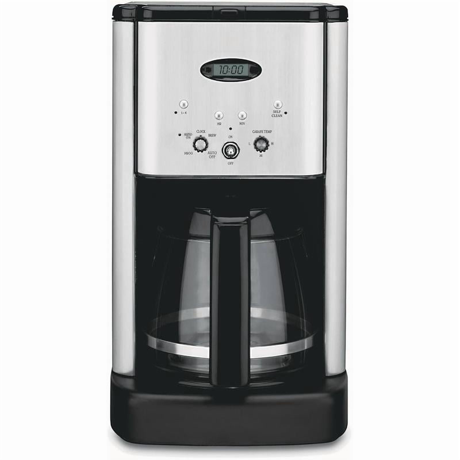 Classic brushed metal design with a 12-cup carafe with ergonomic handle for comfortable, dripless pouring and knuckle guard Brew Pause feature lets you enjoy a cup of Coffee before brewing has finished. Adjustable heater plate (low, medium, high) ensures that your Coffee stays at the temperature you like best 24-Hour Advance brew start, programmable auto shutoff from 0 to 4 hours, Plus a 1- to 4-cup feature when making less than 5 cups Includes: charcoal water filter and permanent gold tone filter that ensures only the freshest Coffee flavor flows through. Measuring scoop. Instruction book Unit Dimension: 9" L x 7. 75" W x 14" H