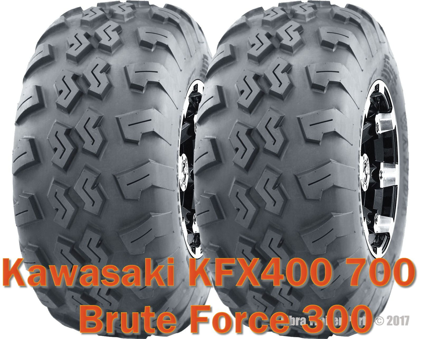Set of two 22x7-10 front tires fit for Kawasaki KFX400 700 Brute Force 300. The tires can be used in any type of cross country terrain. The non-directional tread pattern design provides stable riding and easy steering. Heavy 4 ply rated nylon construction resists punctures and abrasions. Tires only, wheels are not included!