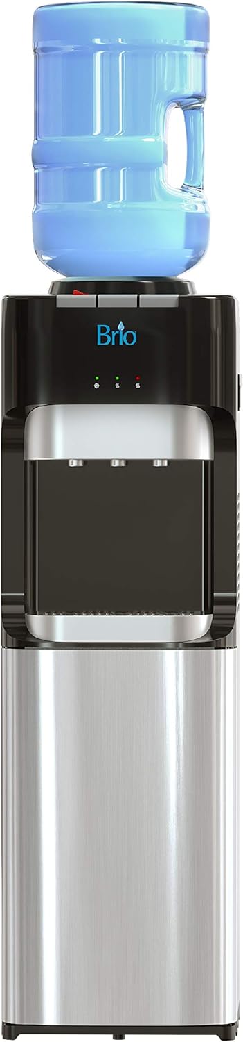 Brio Essential Series Top Loading Water Cooler Dispenser - Tri Temp Dispense, Child Safety Lock, Holds 3 or 5 Gallon Bottles - UL\/Energy Star Approved