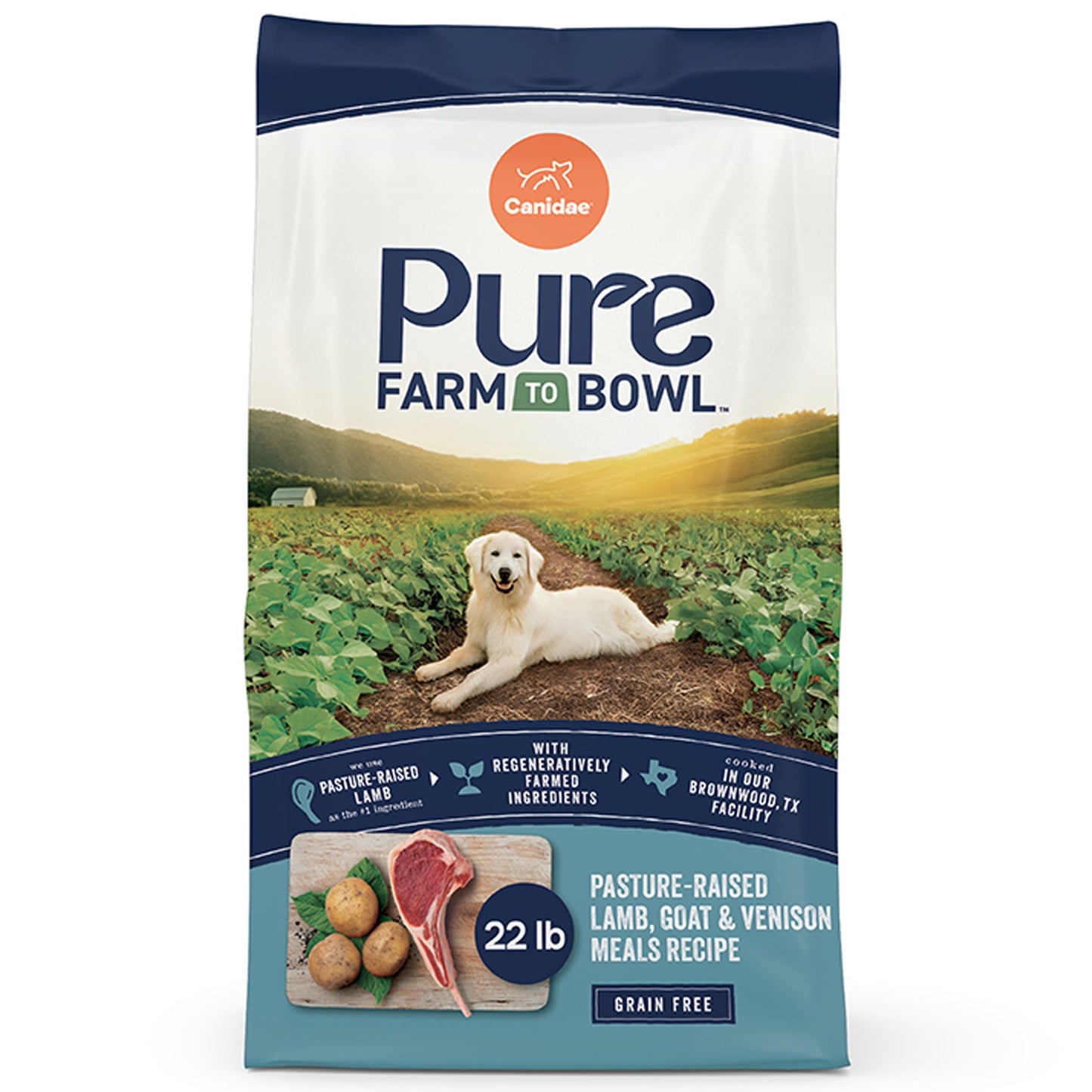 Canidae Pure Farm To Bowl Dog Food - Pasture-Raised Lamb and Goat & Venison Meals Recipe, 22 lbs