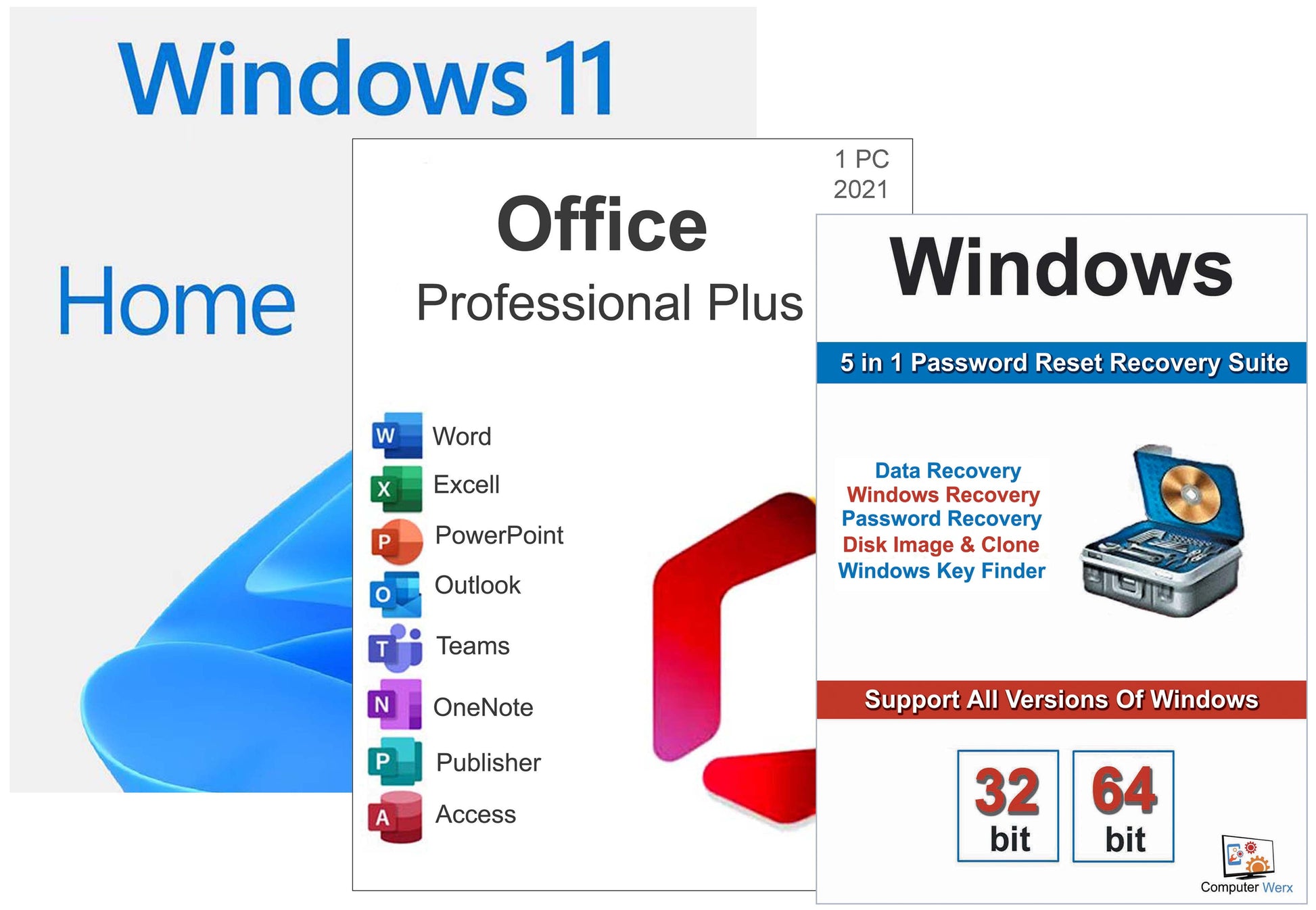 Computer Werx: Windows 11 Home Office Pro Plus & 5 in1 Recovery Reset Password Suite (PC Disc)