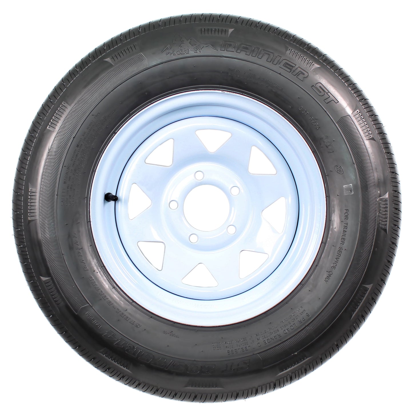 - Trailer Tire & Rim Radial 205/75R14 Load Range C 5 Lug On 4.5" White Spoke 14"