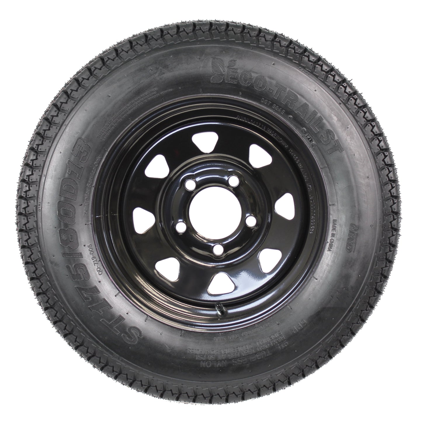- Trailer Tire & Rim Bias Ply 175/80D13 Load C 5 Lug On 4.5" Black Spoke 13"