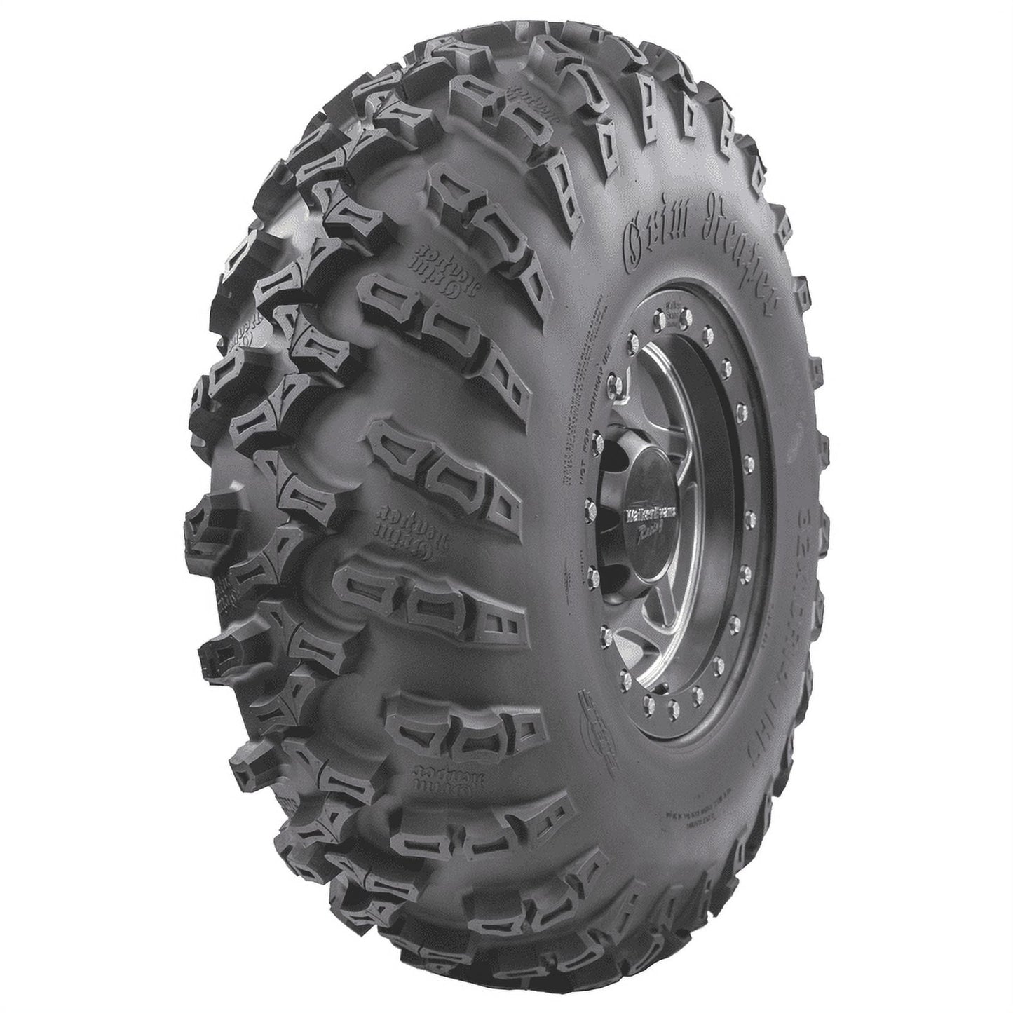 The Grim Reaper combines an aggressive tread with deep wrap-around shoulder lugs to give you excellent rubber-to-ground contact at all angles. It can handle all types of terrain including general trail riding, rocky paths, and has superior performance in softer terrain areas. Its 8-ply rated radial construction gives this tire considerable puncture resistance and a hefty load capacity.