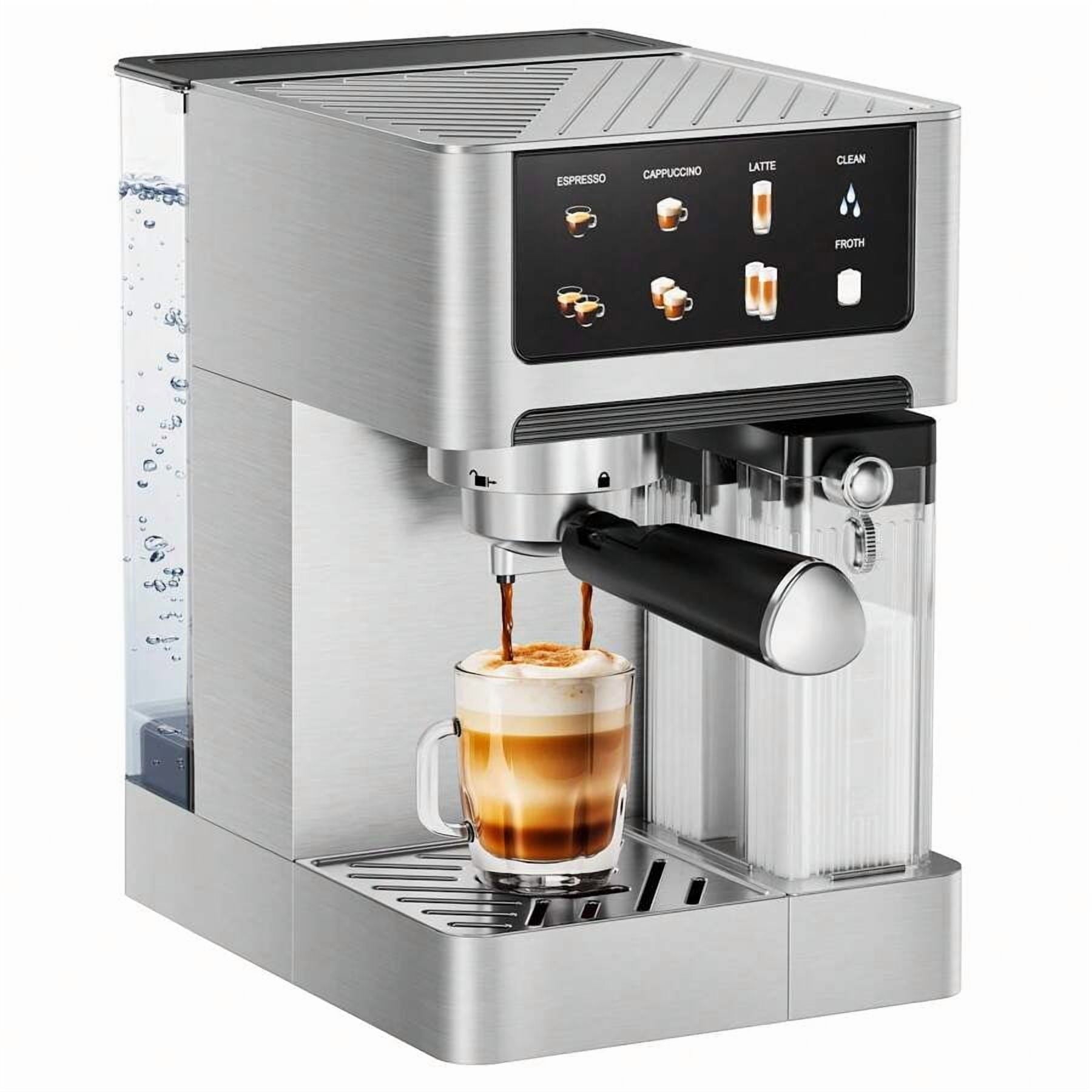 Home 20-Bar Espresso Machine 1350W, Dual Boiler Stainless Steel Design With Color Touchscreen And Automatic Milk Frother – Perfect For Holiday Gifting And Festive Moments
