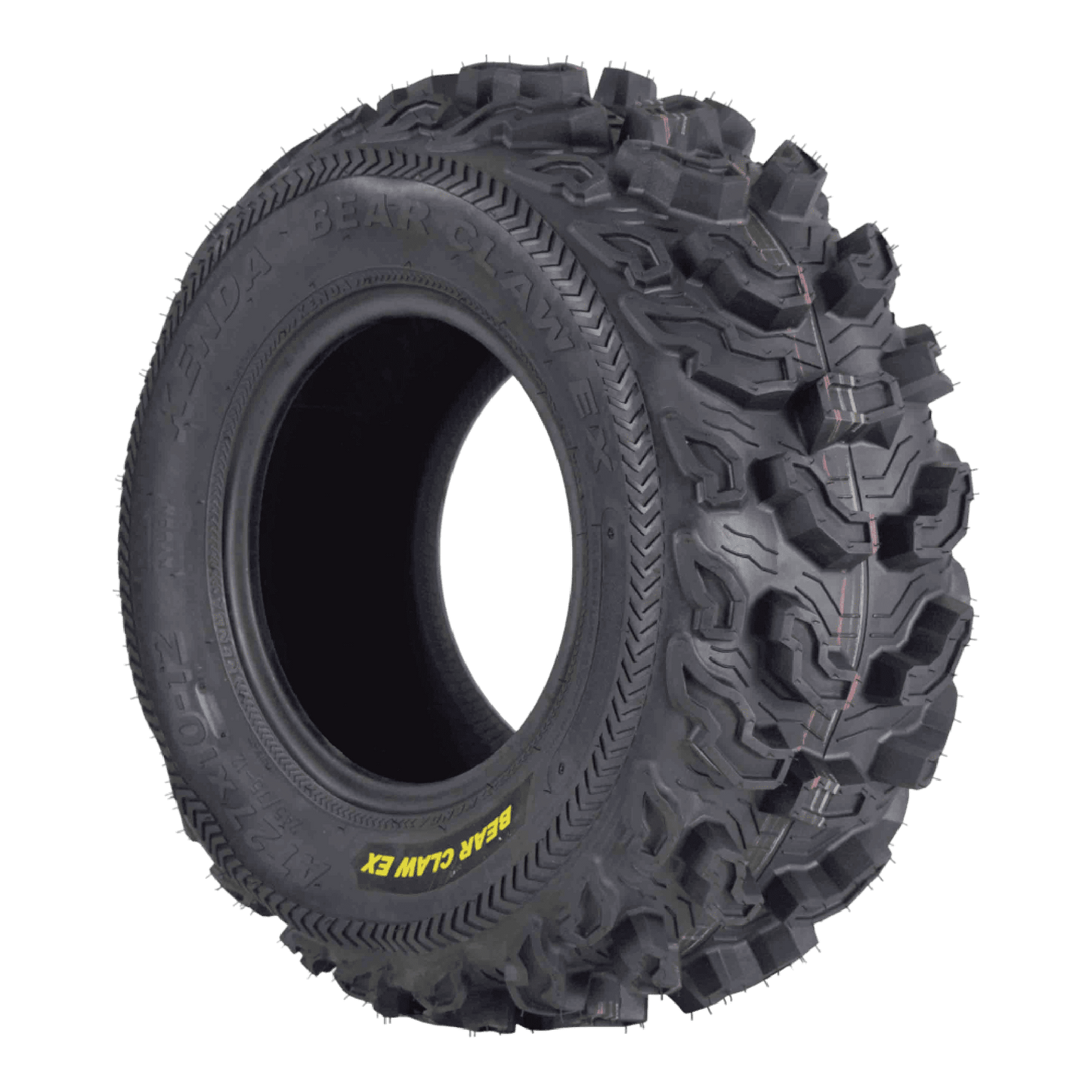 The Kenda Bearclaw EX K573 is a robust and versatile tire designed for All-Terrain Vehicles (ATVs), Utility-Task Vehicles (UTVs), and Side-by-Side (SxS) vehicles. Built for aggressive riding in mixed terrains, this tire combines durability, performance, and protection. It features ramp edge center knobs for reduced rolling resistance, combined with the 6-ply construction, ensuring extra toughness, and the unique tread design, which makes it the ideal tire for tackling challenging off-road conditions. The Bearclaw EX balances strength and efficiency, making it a reliable choice for utility and recreational riders alike.
