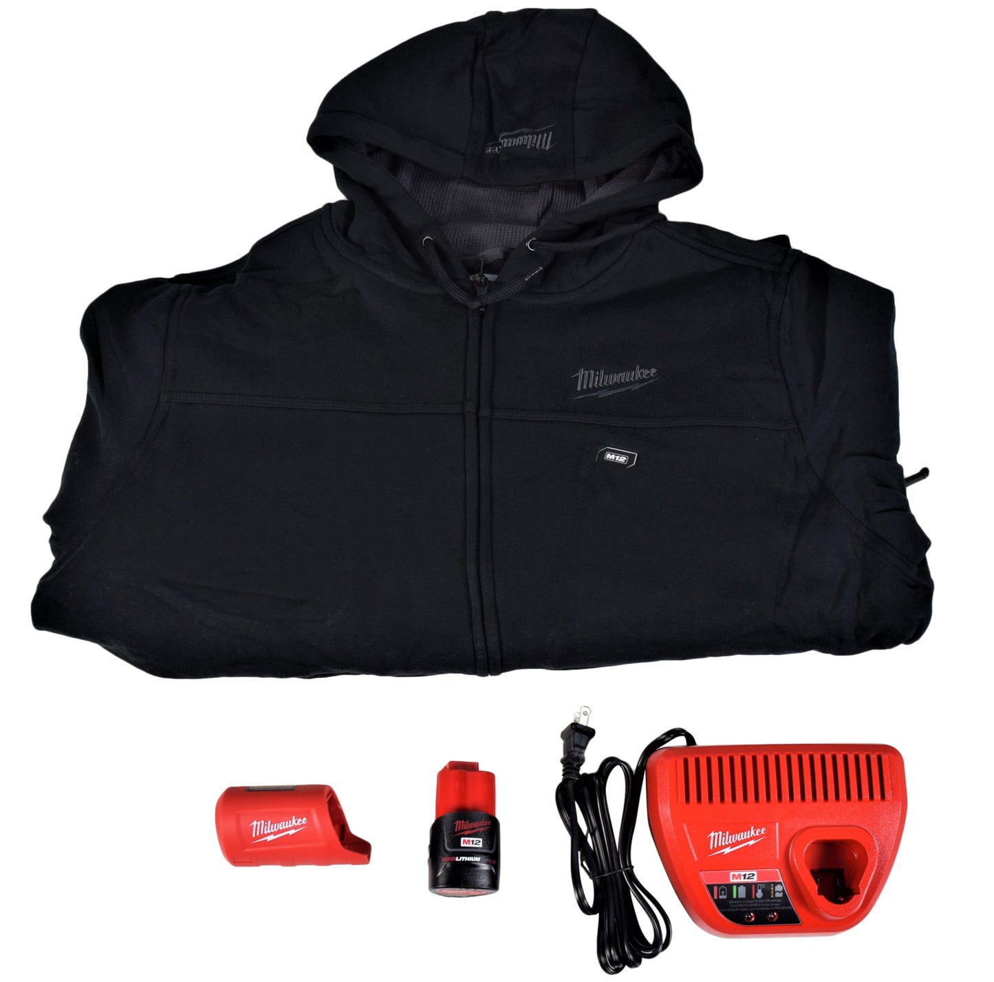 The 302B-21 black heated hoodie kit is powered by the powerful M12 REDLITHIUM battery. Each heated hoodie uses carbon fiber heating elements to create and distribute heat to the chest and back. A single touch LED controller heats the battery heated hoodie to three heat settings, creating a comfortable heat for any environment or weather. This MILWAUKEE heated hoodie kit has a new Quick-Heat function that allows you to feel heat three times faster than previous hoodies and market competitors. These kits come with the M12 battery heated hoodie, one M12 battery, and a battery charger.