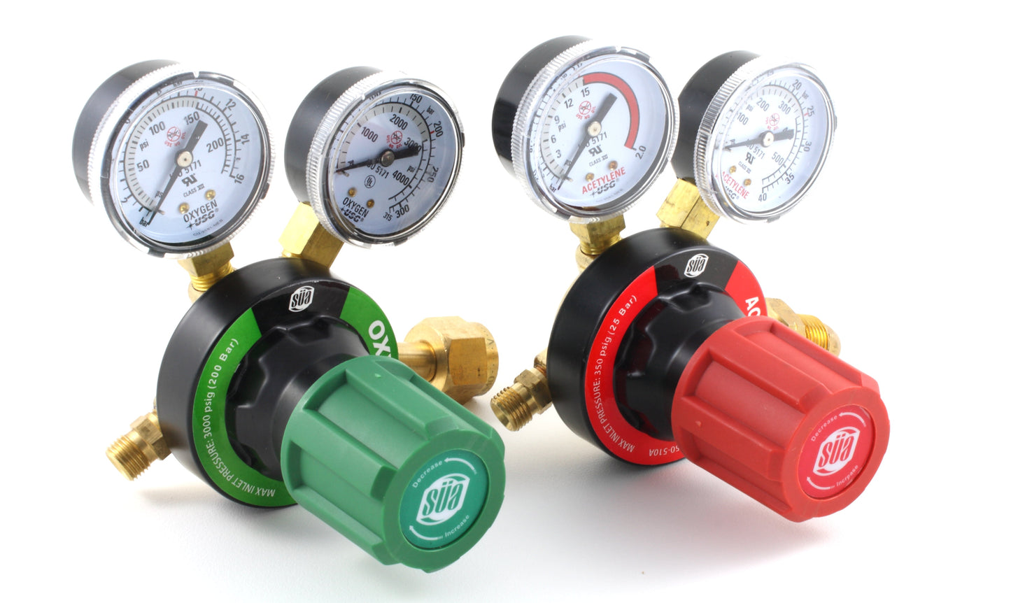 SÜA Oxygen and Acetylene V350 Regulators Combo - Compatible with Victor
