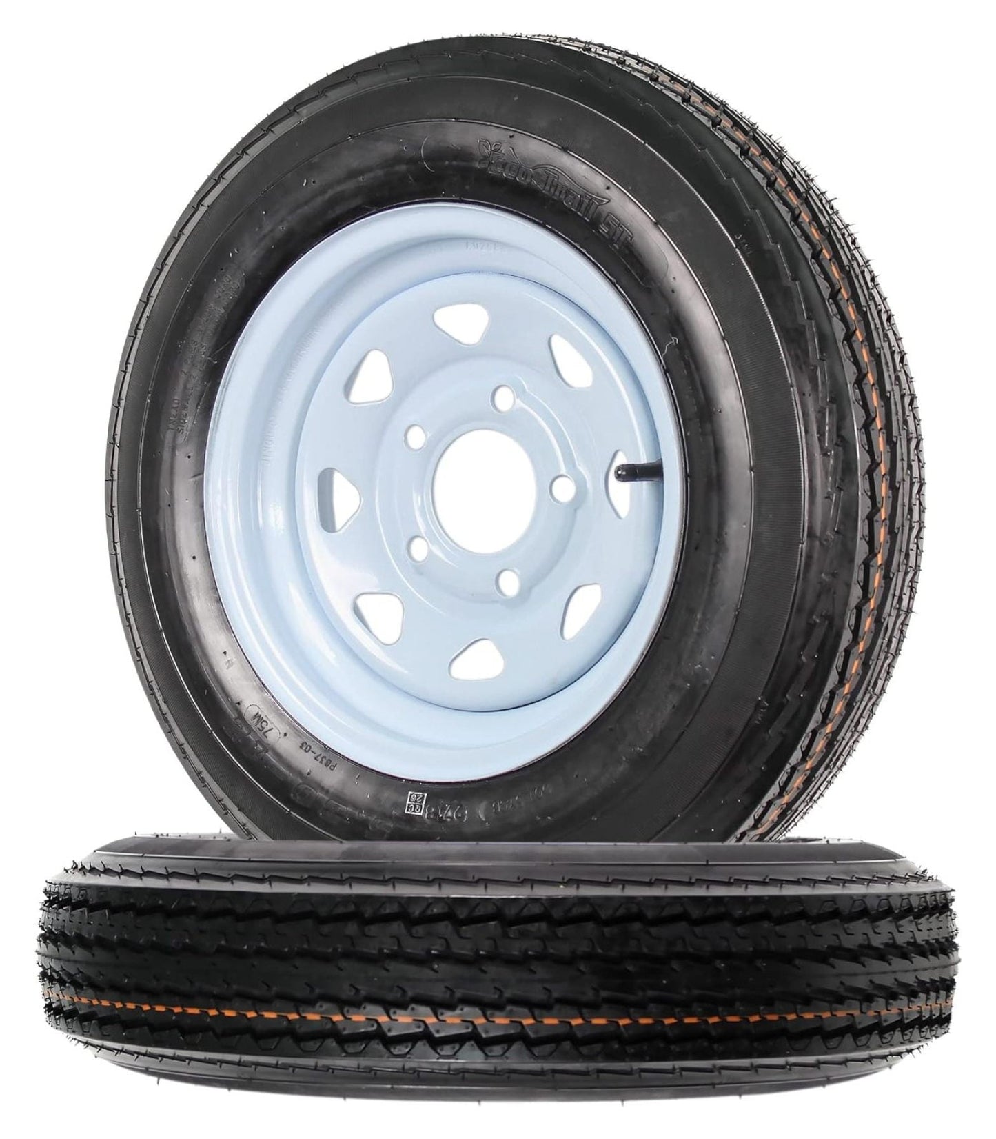 Two Trailer Tires On Rims 5.30-12 530-12 5.30 X 12 5 Hole Wheel White Spoke - 2 Year Warranty w/ Roadside
