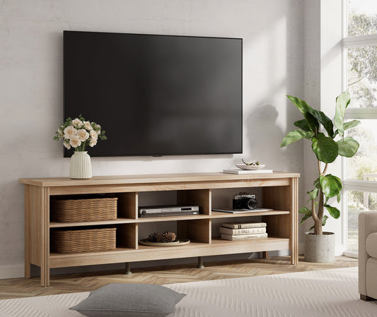 Farmhouse TV Stand for 75 inch TV with 6 Cubby for Living Room, Espresso TV Console for Bedroom, 70 inch
