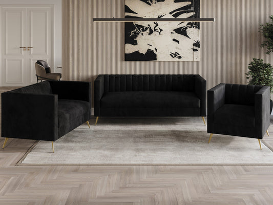 Home Design Weiss Velvet Square Arm Chair with Channel-Tufted Back and Gold Metal Legs, Modern Upholstered Living Room Seating, Dark Gray