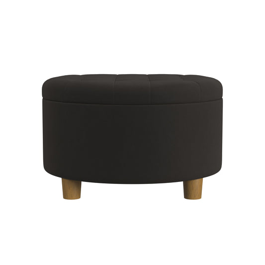 HomePop Large Round Button Tufted Storage Ottoman, Fawn Velvet