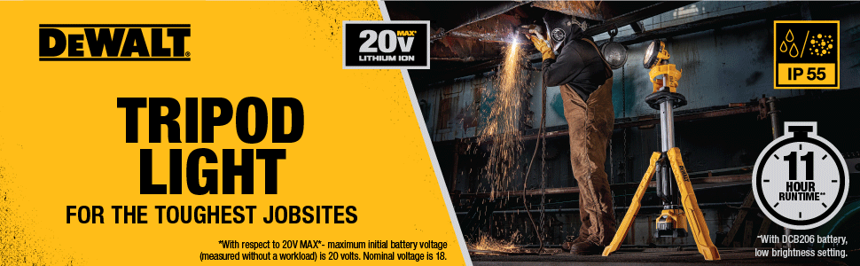 DEWALT 20V MAX Cordless LED Work Light and Tripod Base Kit with Battery and Charger Included (DCL079R1)