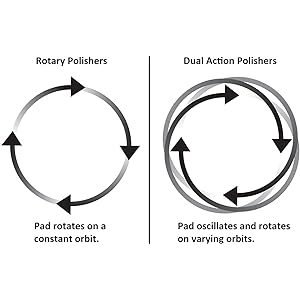 Traditional rotary polishers have a larger wheel spinning at a high RPM, which means the operator's technique is important as to avoid burns and swirls. The Shurhold polisher's dual-action, 6-inch oscillating head eliminates these issues and allows anyone to get the same great finish without burns or swirls.