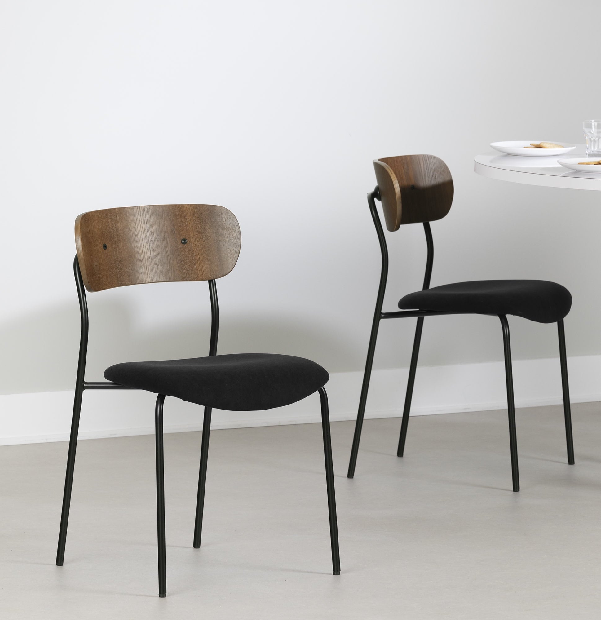 - INSPIRATION MID-CENTURY GLAM: Combine simplicity and elegance with this set of 2 chairs with rounded shapes and a natural look. The mix of wood, metal and fabric give them a unique finish that will stand out in your dining room.